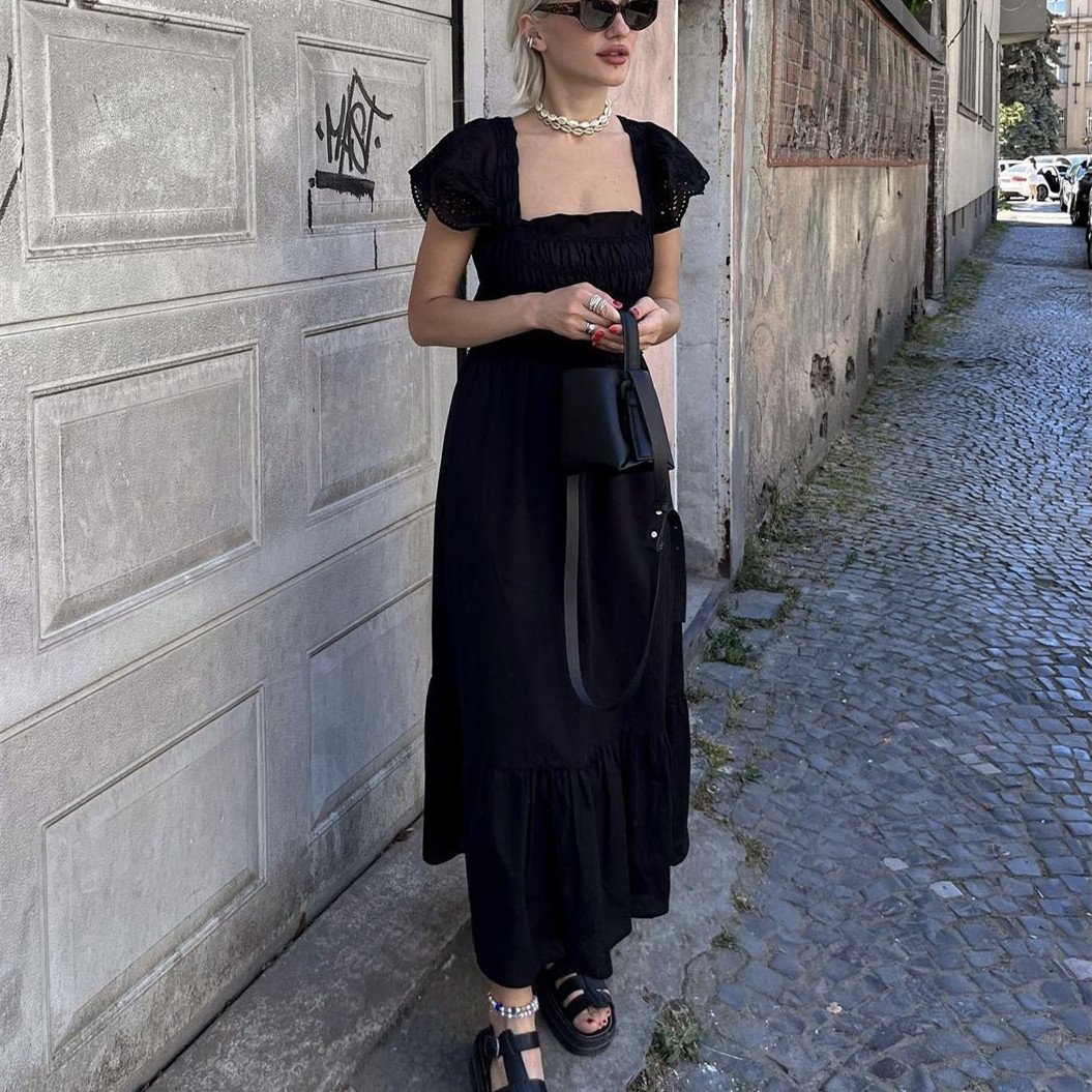 Flowing A-line skirt creates graceful movement—perfect for dinners, parties, or special occasions